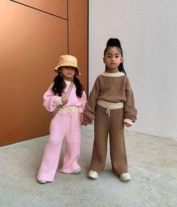 गर्म बिक्री बच्चे सर्दियों के कपड़े ठोस रंग के बाल स्वेटर सेट पुलोवर कपड़ों को 1 से 5 साल की लड़कियों के लिए समर्थन