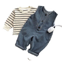 Pulôver e calças infantis listradas 100% algodão para crianças, blusa de malha infantil mais vendida
