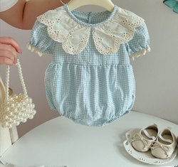 ชุดรอมเปอร์ผ้าฝ้ายลายตารางสำหรับเด็กทารกน่ารักลายดอกไม้เสื้อผ้าฤดูร้อนสำหรับทารกและเด็กเล็ก2025